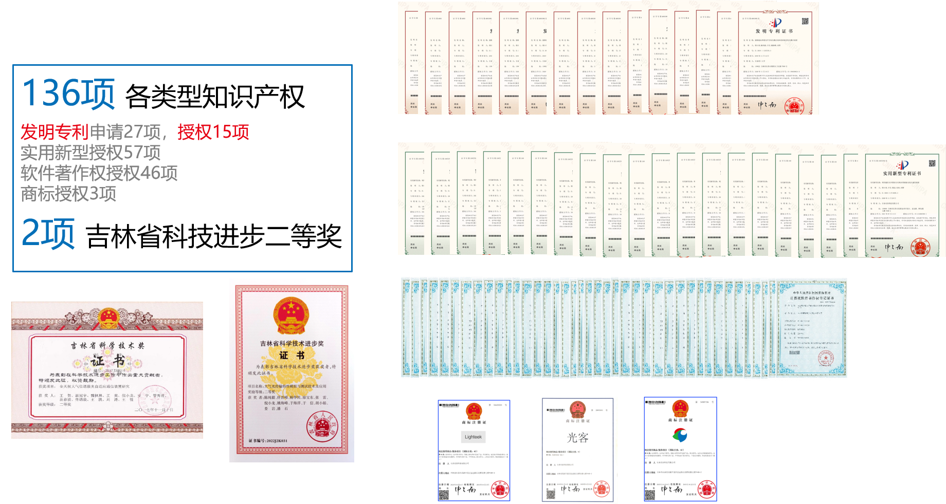 公司无线光通信产品线齐全,涵盖卫星无线光通信、机载无线光通信、准静态无线光通信、米级无线光通信以及可见光通信等各个领域,相关产品广泛应用于航空、航天、工业自动化、高精度测量及自动驾驶等多个领域。公司具备无线光通信设备整机设计能力、工程实现能力及测试验证能力。相关技术获吉林省科学技术奖2项,授权发明专利15项、实用新型专利57项、软件著作权46项。